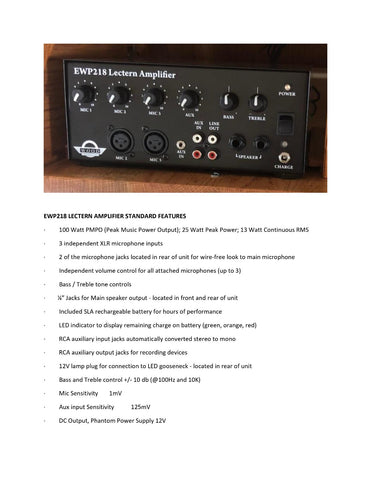 • EWP207 Lectern Amplifier included on convenient tilt out