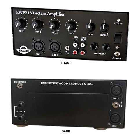¼” microphone jacks in rear for lecterns’ internal speakers and in front for an additional speaker