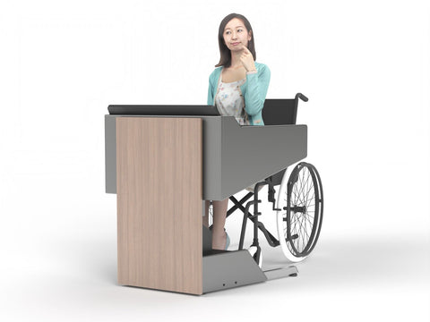 The LEL023 is an electric height adjustable ADA lectern. It was designed with an ergonomic double work surface that provides a little extra space inside to fit slim electronics. The units contemporary and sturdy design is made from scratch resistant thermowrap finished panels. The standard finish consists of ‘SGT Shark Grey’ on the outer body with your choice of finish on the front panel. This lectern is a wonderful solution for giving public presentations, and can be used as a single workstation as well.