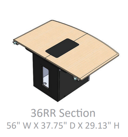 The T3600 modular video conference table with multiple end choices and configurations allow for various room solutions. Adding extensions allow for additional seating or infinite table length. Electronics, power grommets/cubby's custom cutouts. Islands can be replaced as your technology changes.