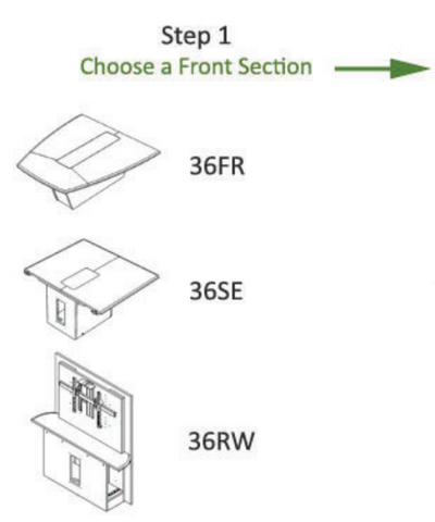 - 36FR: 56" W x 63.5" D x 29.13" H